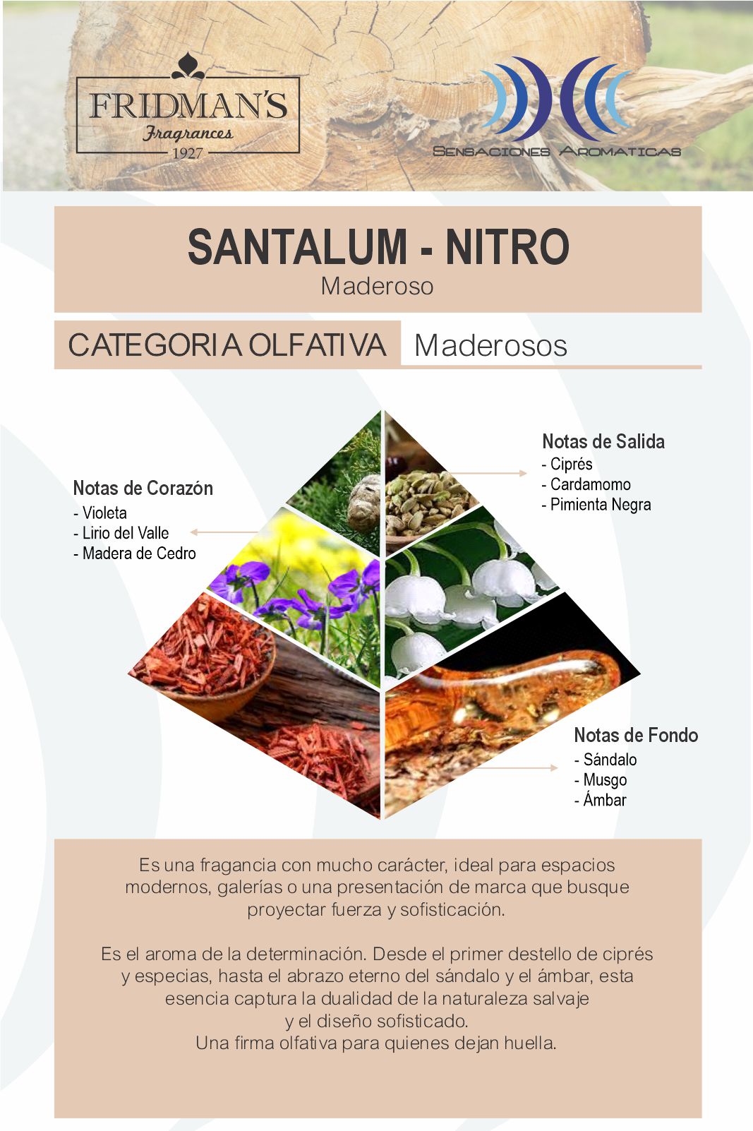 Una fragancia con mucho carácter, ideal para espacios Modernos y postmodernos,tales como Galerias y presentaciones de Marca que busquen proyectar fuerza y sofisticacion.